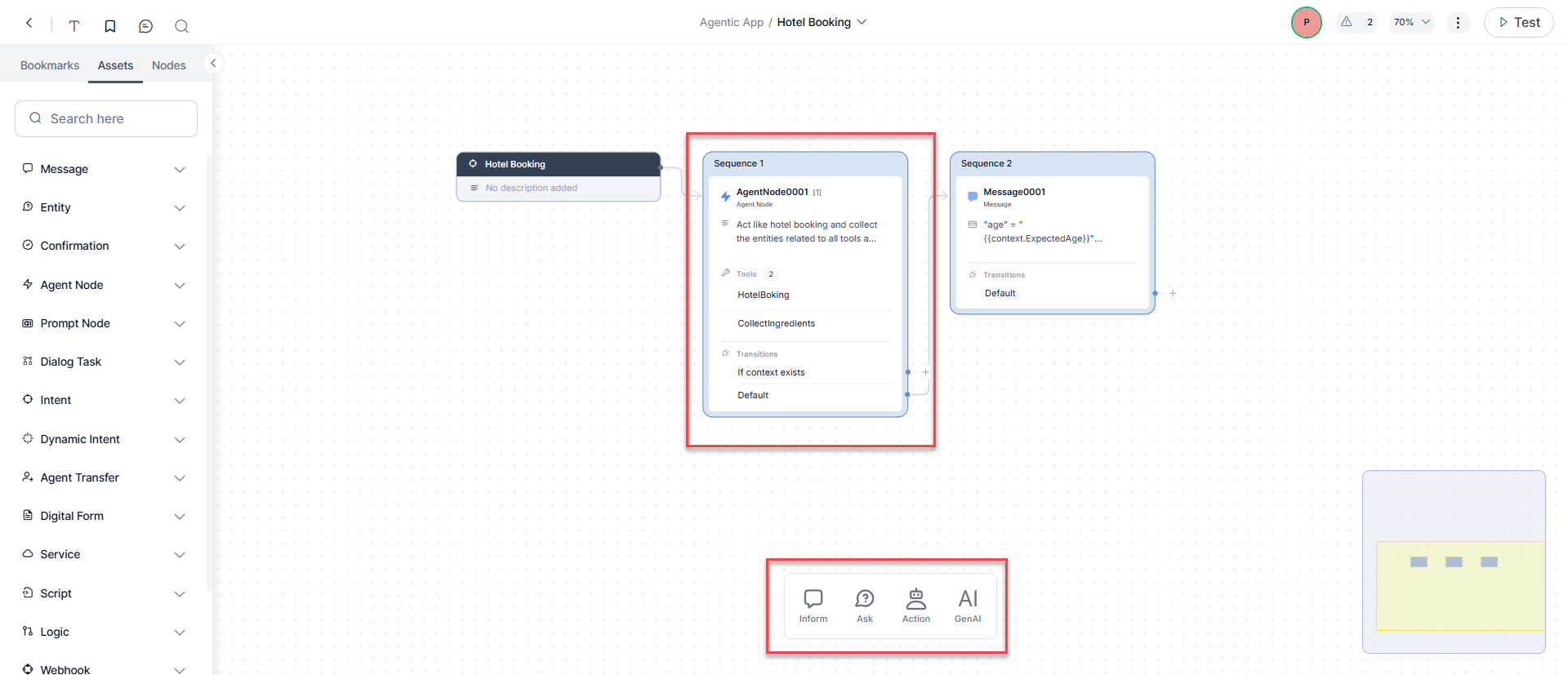 - Entity Collection: The Agent Node simplifies the process of gathering entities within a conversation, reducing the need for multiple entity nodes. This streamlined approach enhances the user experience by making AI Agent interactions more natural and user-friendly.