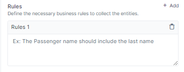 Add the business rules that the collected entities should respect. In the rules section, click + Add, then enter a short and to-the-point sentence, such as: