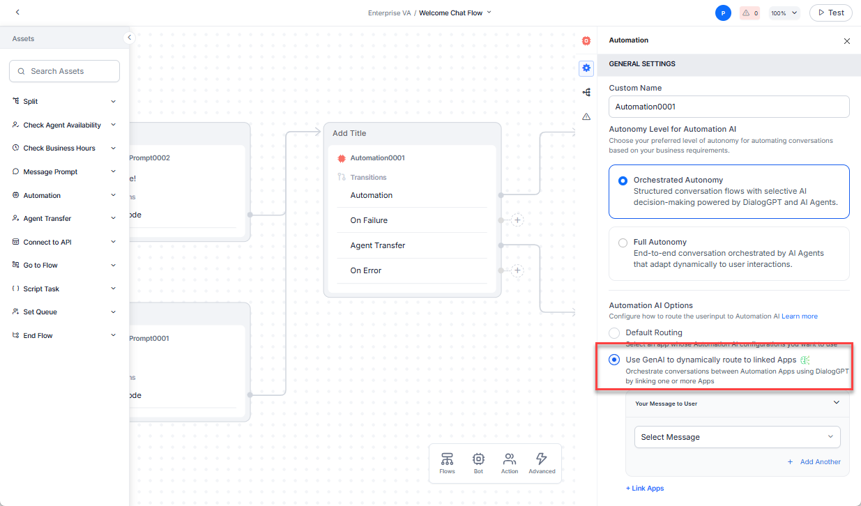 - Link Multiple Apps via Automation Node: The Automation Node in Experience Flows has been enhanced to support linking multiple apps and using DialogGPT for intent identification.