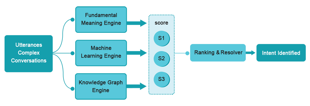 - Ranking and Resolver to score the results from the above engines and rank them according to the set business rules, with the purpose of deciding on the winning intent.