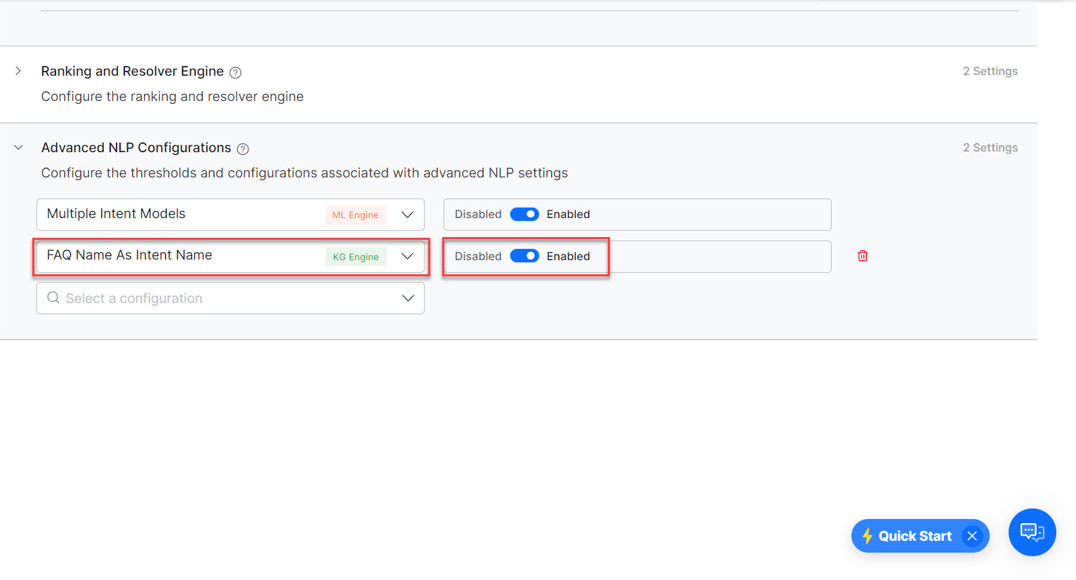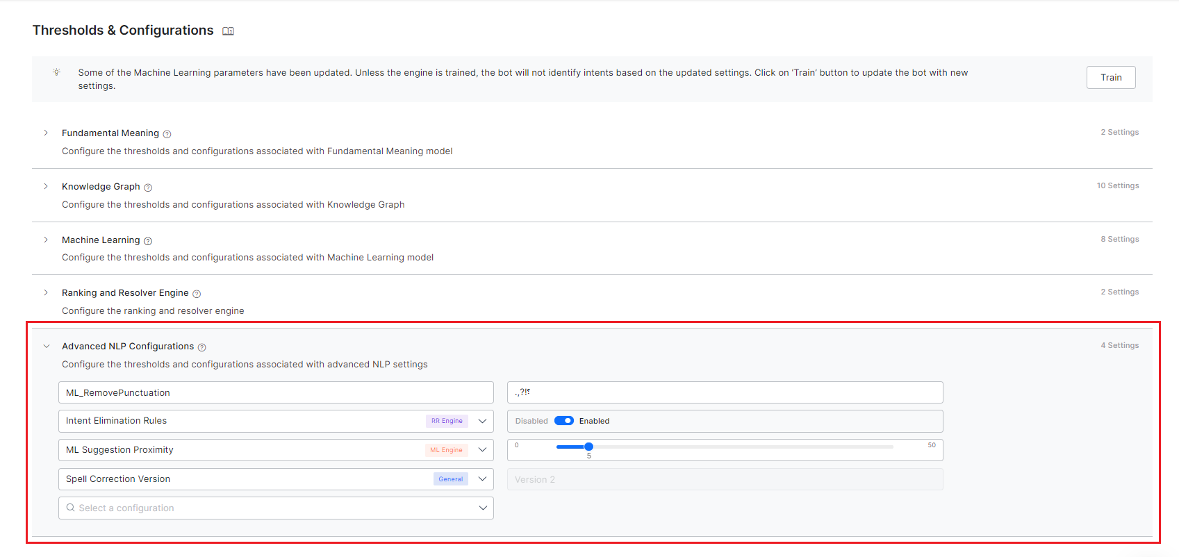 Apart from these, under the Advanced NLP Configurations section, there are advanced settings that you can use for specific use cases and requirements.