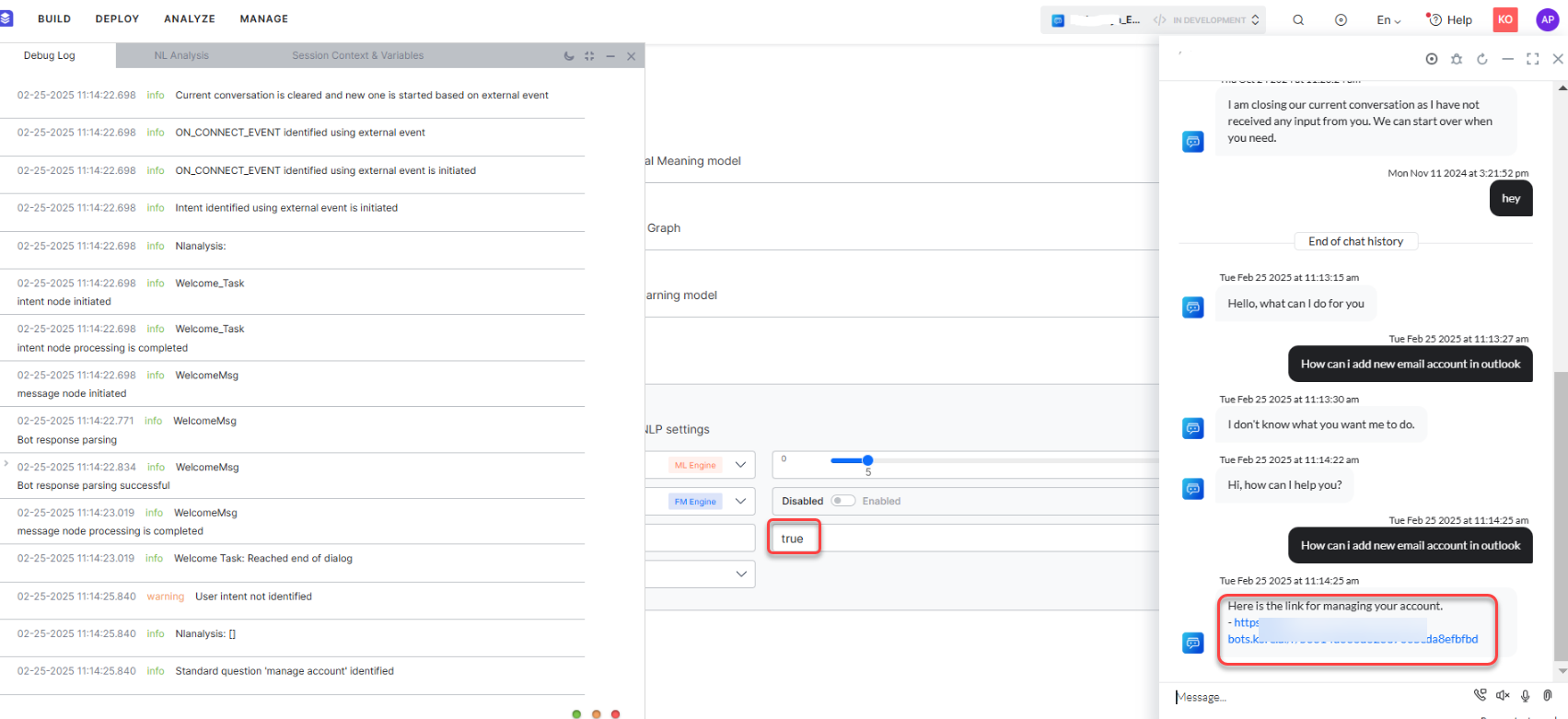 This flag acts as a hidden advanced NLP setting and provides an option to disable the triggering of the "Manage My Account" standard response.