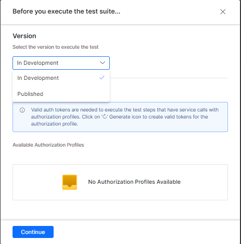 Note: Ensure that you have valid authorization tokens for the app to make the service calls that would be part of the test suite.