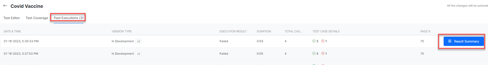 Past Test Executions¶