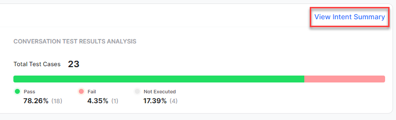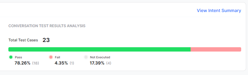 The View Intent Summary shows how well test cases are covering and performing at the intent level, making it easier to identify the most important failing and less-covered intents.