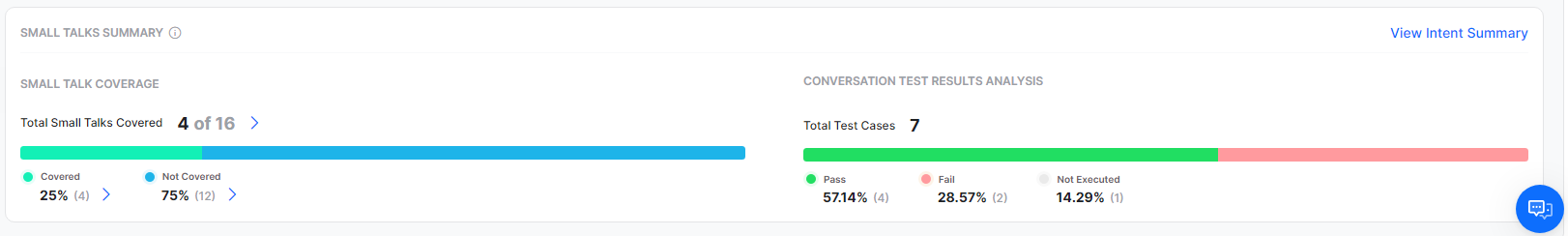 - Not Executed: The count of the Small Talk intent test cases that are not executed.