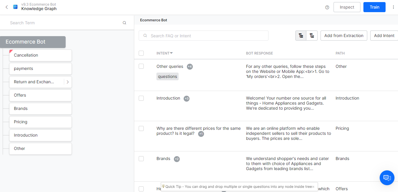 - Intent Type: Displays if the intent is a Dialog intent, FAQ, or Small Talk.