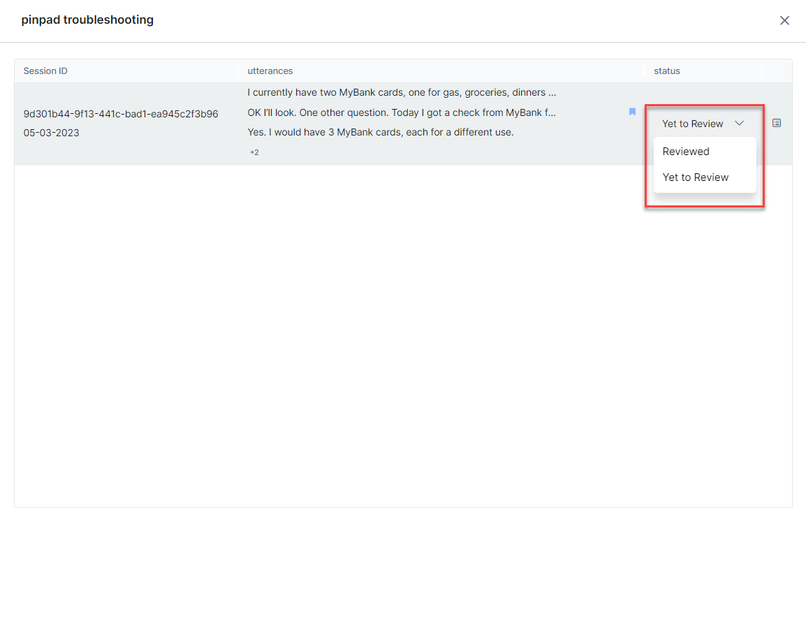 - On clicking the chip, you see all the utterances for the corresponding session.