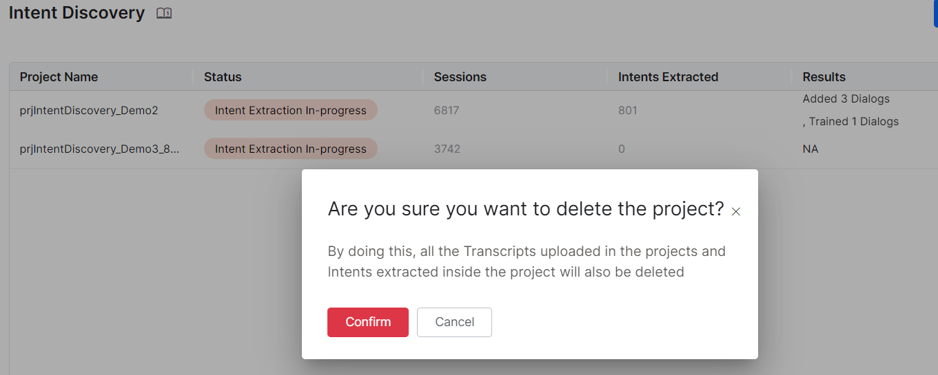 Please note that the previously loaded transcript files will not be deleted while uploading new ones. Re-extraction of intents will restore the above-deleted project data.