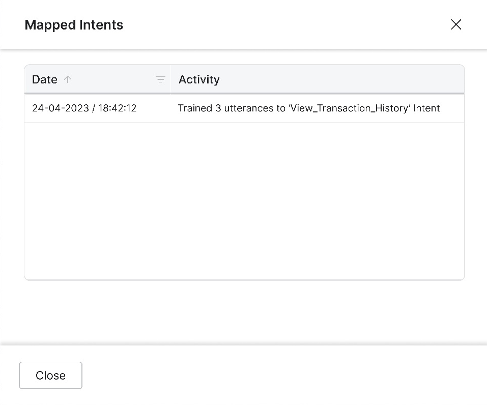 In a scenario where the utterances cannot be mapped to the existing intents, you can create a new intent. Once the intents are listed, you can perform the following actions for the intents: