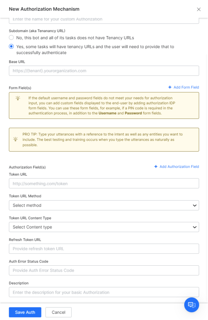 - For situations when there may be authentication errors, enter the Auth Error Status Code.