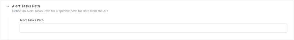 In the previous section, Alert Tasks Path lets you define a specific path for data from the API. This is an optional field that you can use to specify if the Response Sample section contains a hierarchical tree structure of data and you only want a specific hierarchical level submitted for the task request object.