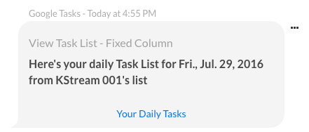 With some tasks, you may want to add a link to a message sent to a user that contains data too large for a message, for example, an message with a picture, abstract, and a link to a full article or report. This topic describes how to define a table report with fixed-column widths. The table report type can be displayed to an end-user when the URL for this table is clicked in a message. In the following illustration, the message sent to the end-user contains a link to the table report called Your Daily Tasks.