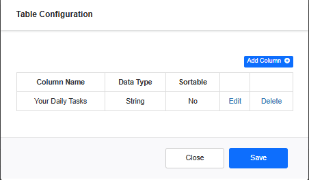 Click Done. The Table Configuration dialog is displayed with the new column added as shown in the following illustration.