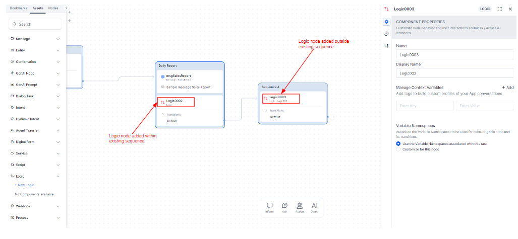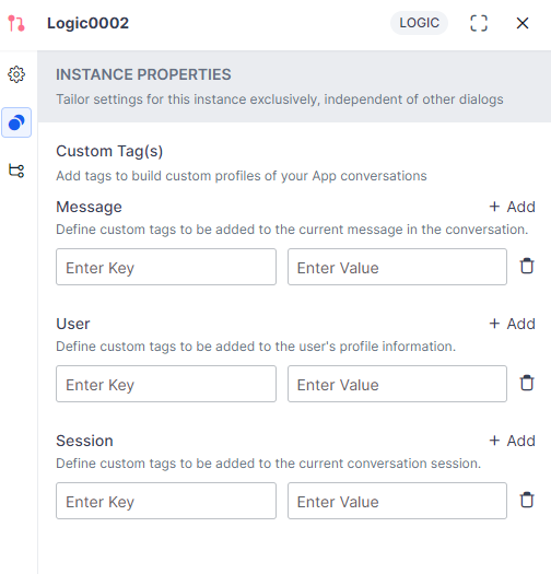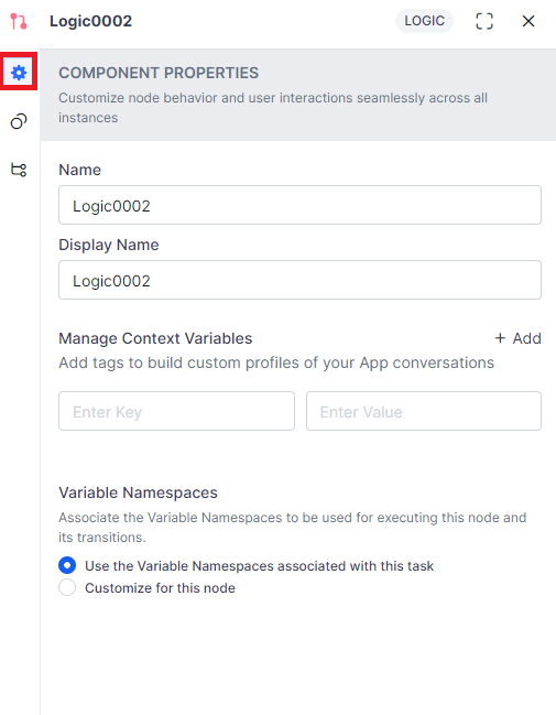 All changes made to the Component Properties tab will affect all instances of the Logic node, across Dialog Tasks.