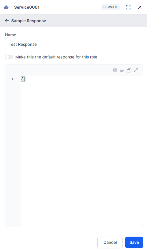Add the sample response(s) you want the Service Node to return.