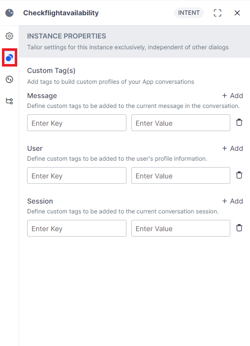 - Session – Define custom tags to be added to the current conversation session.