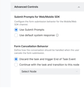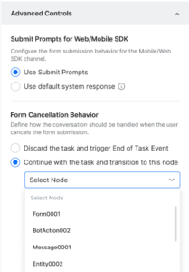 You can select how the AI Agent handles the conversation when the user cancels the form. You can choose from two options: