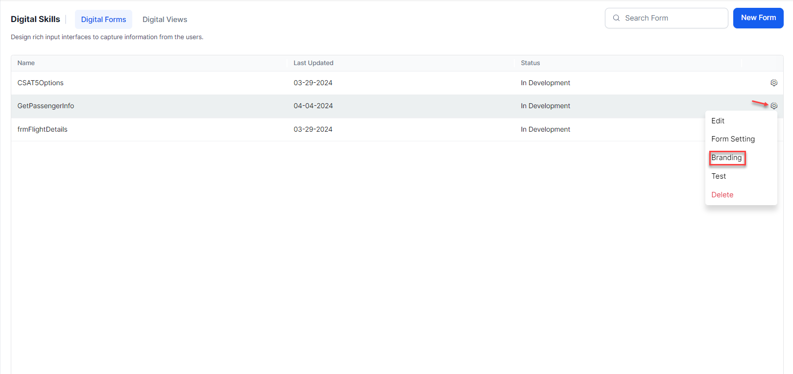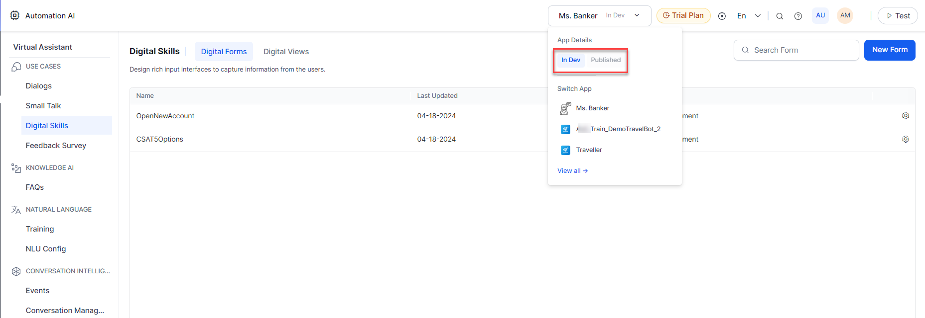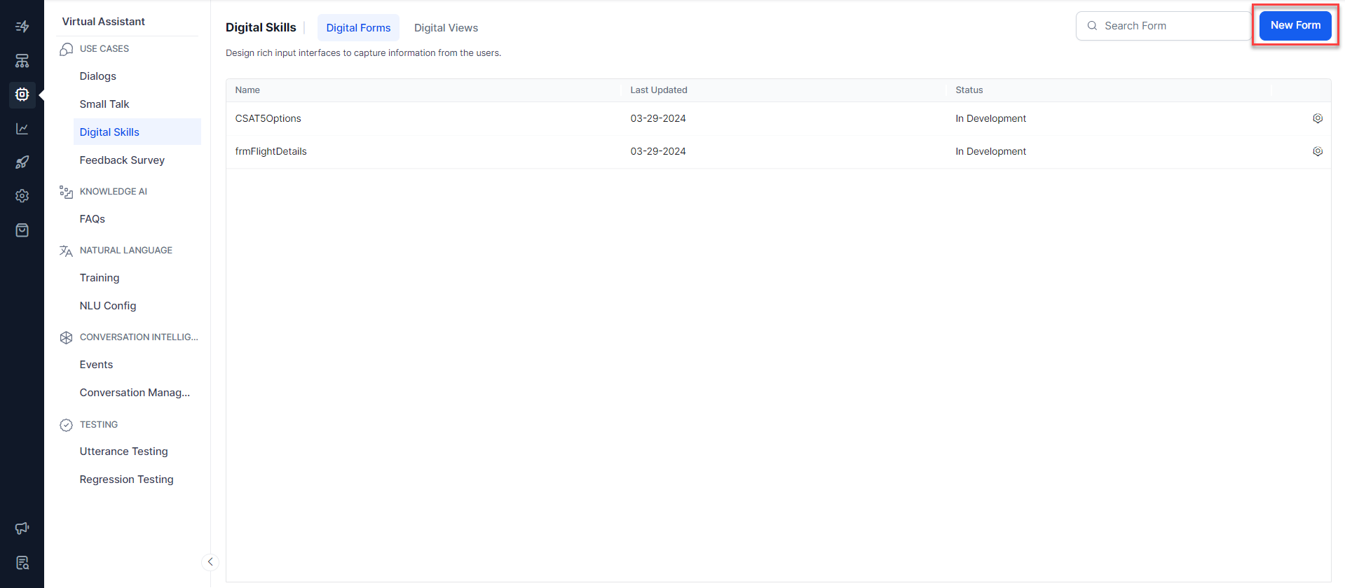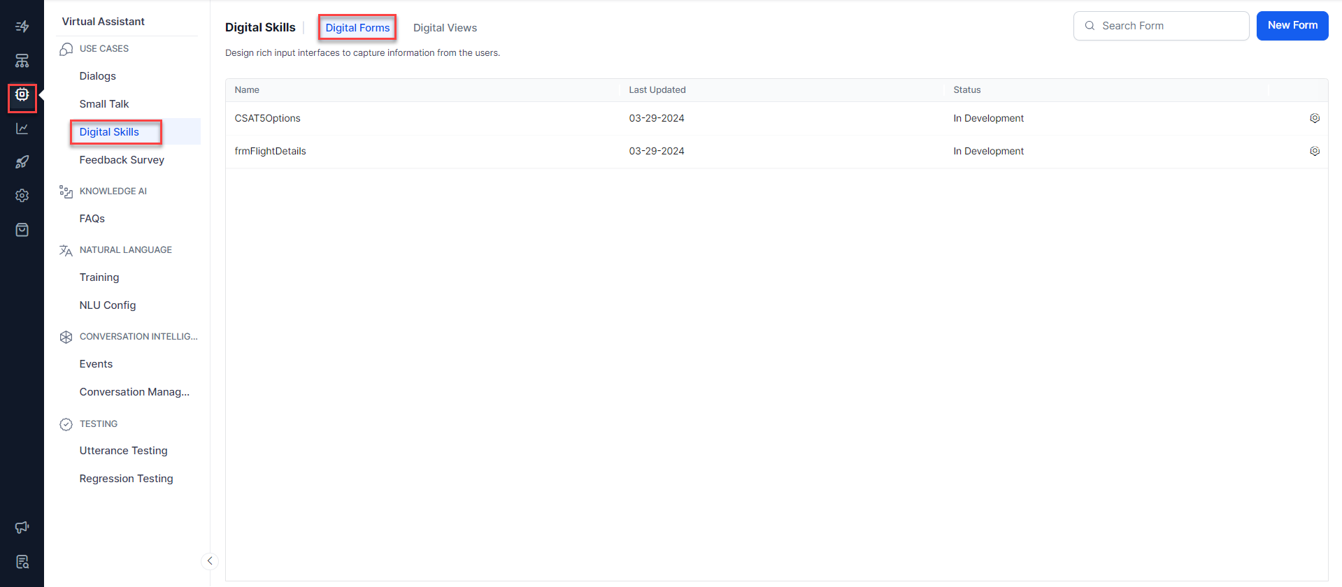 - Under Automation AI > Digital Skills, select Digital Forms.