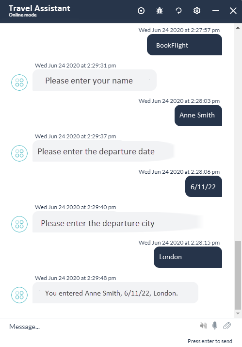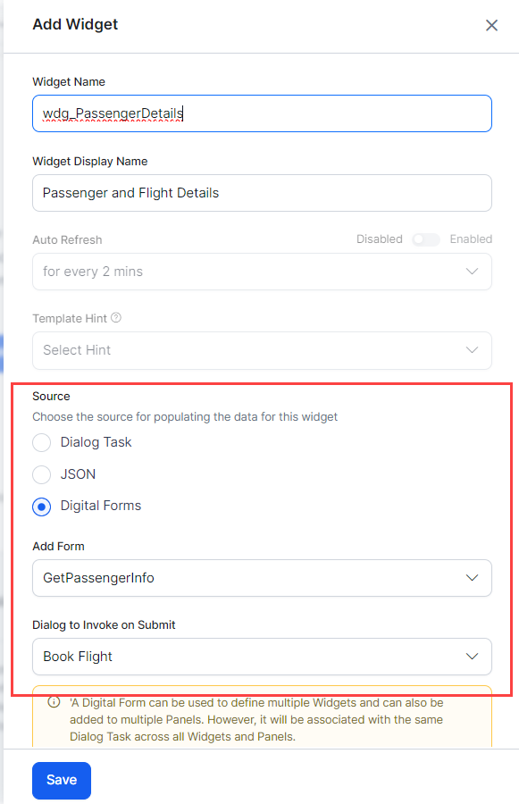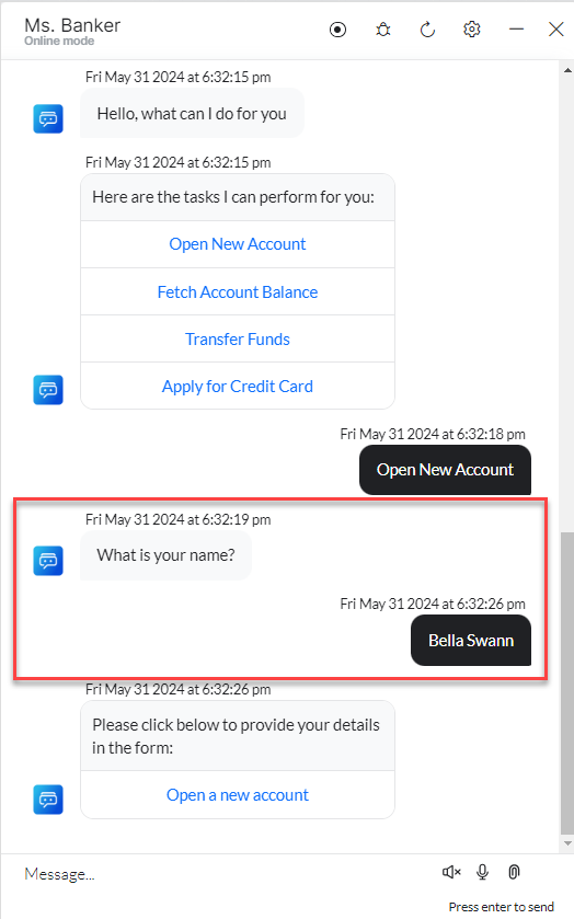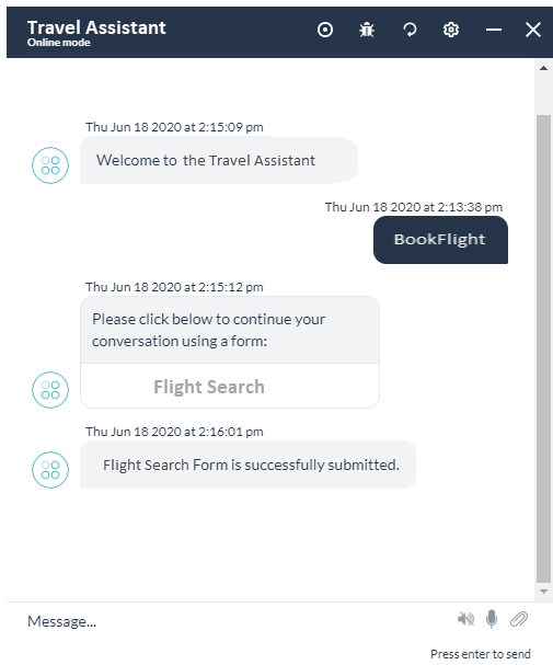 In a standard Dialog Task, this scenario is designed by placing a series of Entity Nodes connected back-to-back and the user is asked for values for each of these entities sequentially, which is quite tedious and frustrating. Digital Forms mitigate this issue by presenting users with an interactive interface that they can use to provide the information they are asked for in one go.