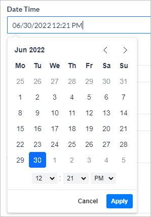 – | The label of Apply button on the date-time picker; visible only if timePicker is set to true |