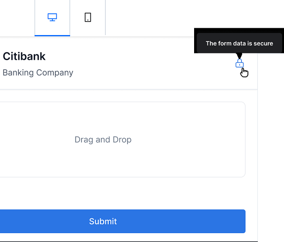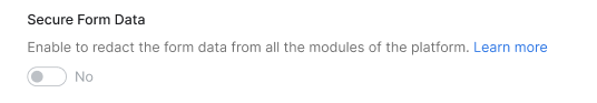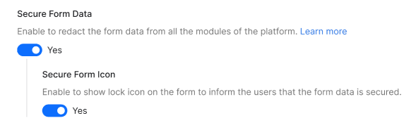 Once enabled, the Platform will replace the user input with a unique random system-generated alphanumeric value in all the modules. Also, the Secure Form icon and a tip will be displayed, notifying the user that the form is secure.