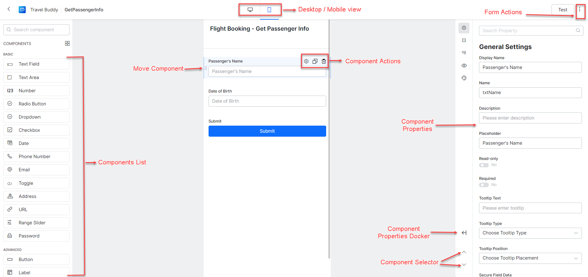 - Form Creation: Define a Digital Form by adding components and configuring their properties.