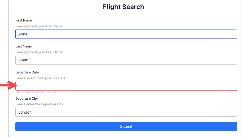 Form Submission: When it is submitted, the component values are validated and any errors are highlighted. Based on the mode of invocation, post successful validation: