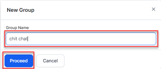 On the New Group dialog box, enter a name in the Group Name field, then click Proceed.