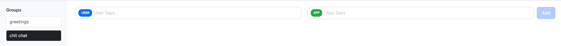 You can click the existing Greetings group to modify it, if the default small talk does not fit your needs. From the Small Talk editor that opens you can now enter User Utterance – Bot Response pairs and Add to the list.