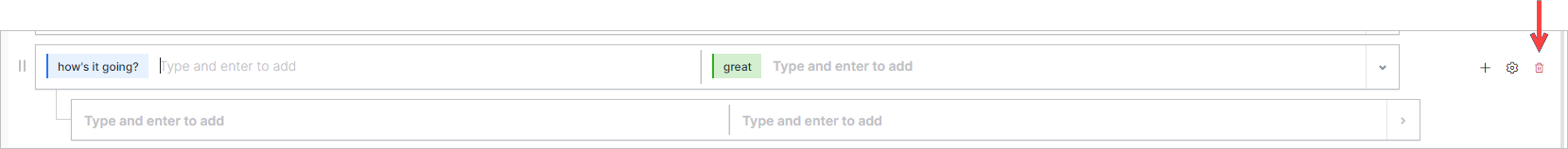 You can also delete the entire Query-Response pair, along with its child pair by hovering over the parent and clicking the bin icon on the far right. You will be asked to confirm your choice.