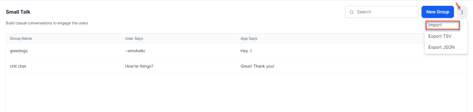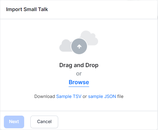 If you have already had Small Talk for your company, you can import it using a JSON or TSV file