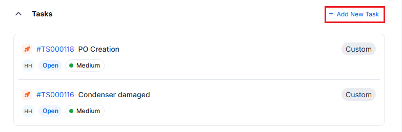 Click the + Add New Task. By default, the New Task dialog box is displayed with a default Task Number assigned.