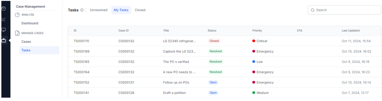 Priority: Displays the priority level of the case (Critical, High, Medium, Low).