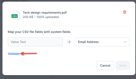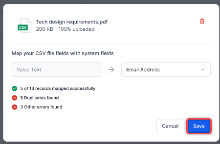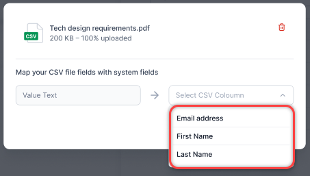 On completion, map the CSV file fields with system fields.