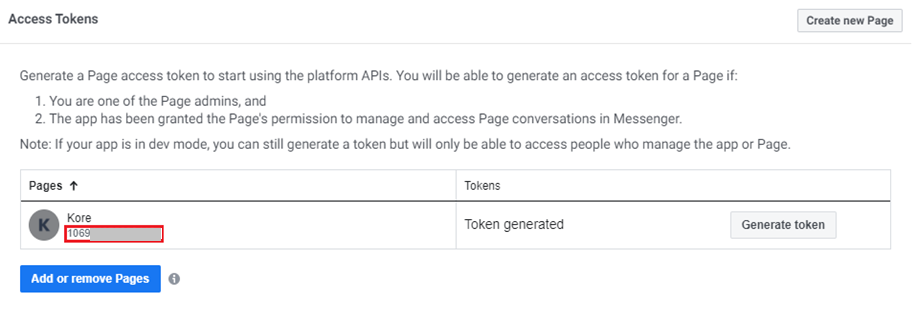 You now need to associate a page with the app. If you do not have a page, click Create New Page in the Access Tokens panel.