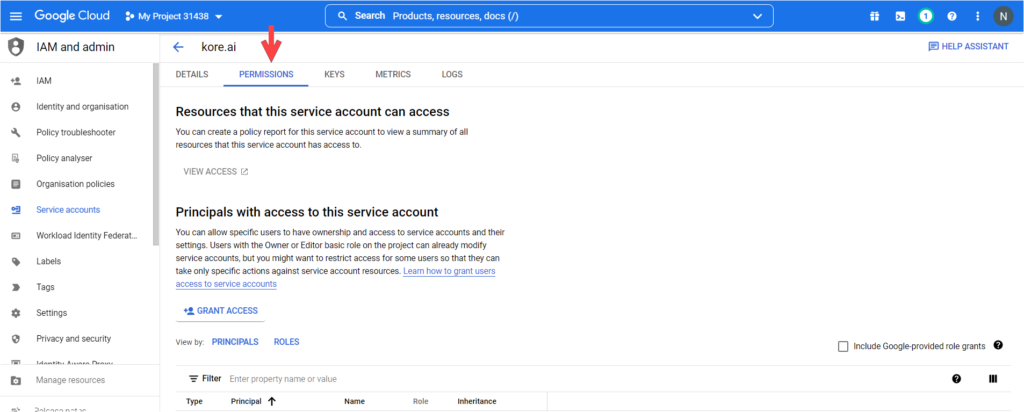 - Grant this service account access to project