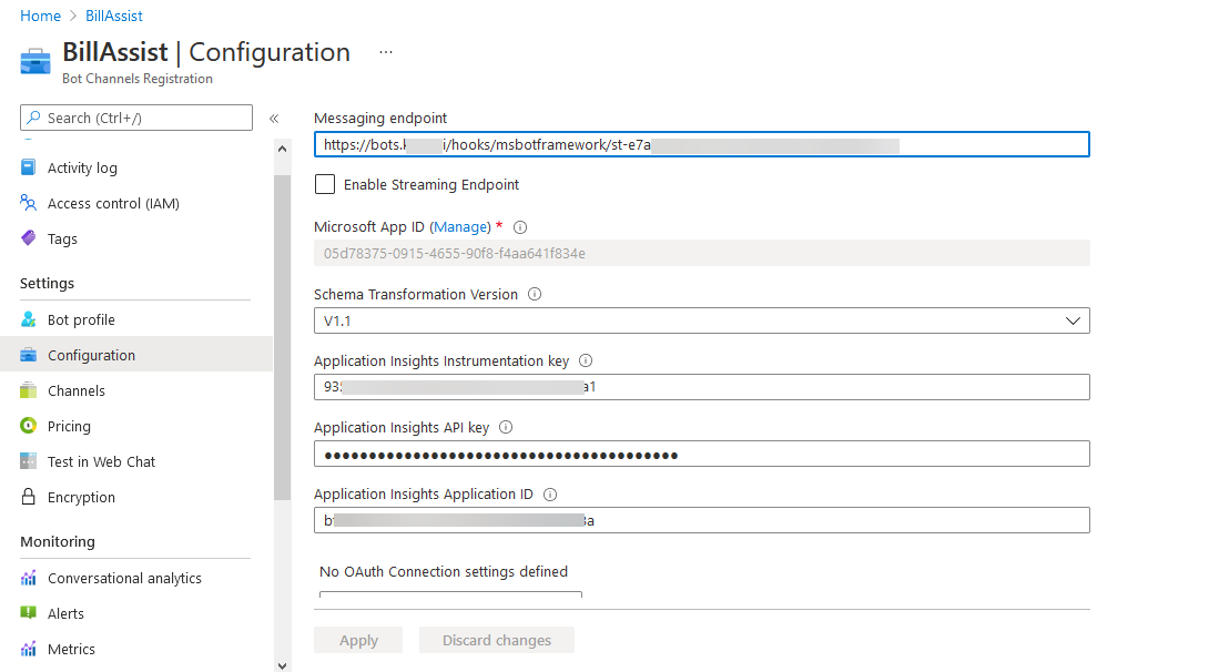 - App ID: The app ID of your Azure Bot resource.