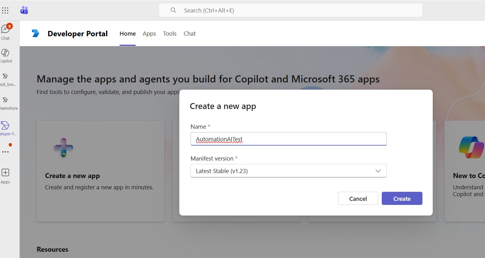 Open the Microsoft Teams Developer Portal.