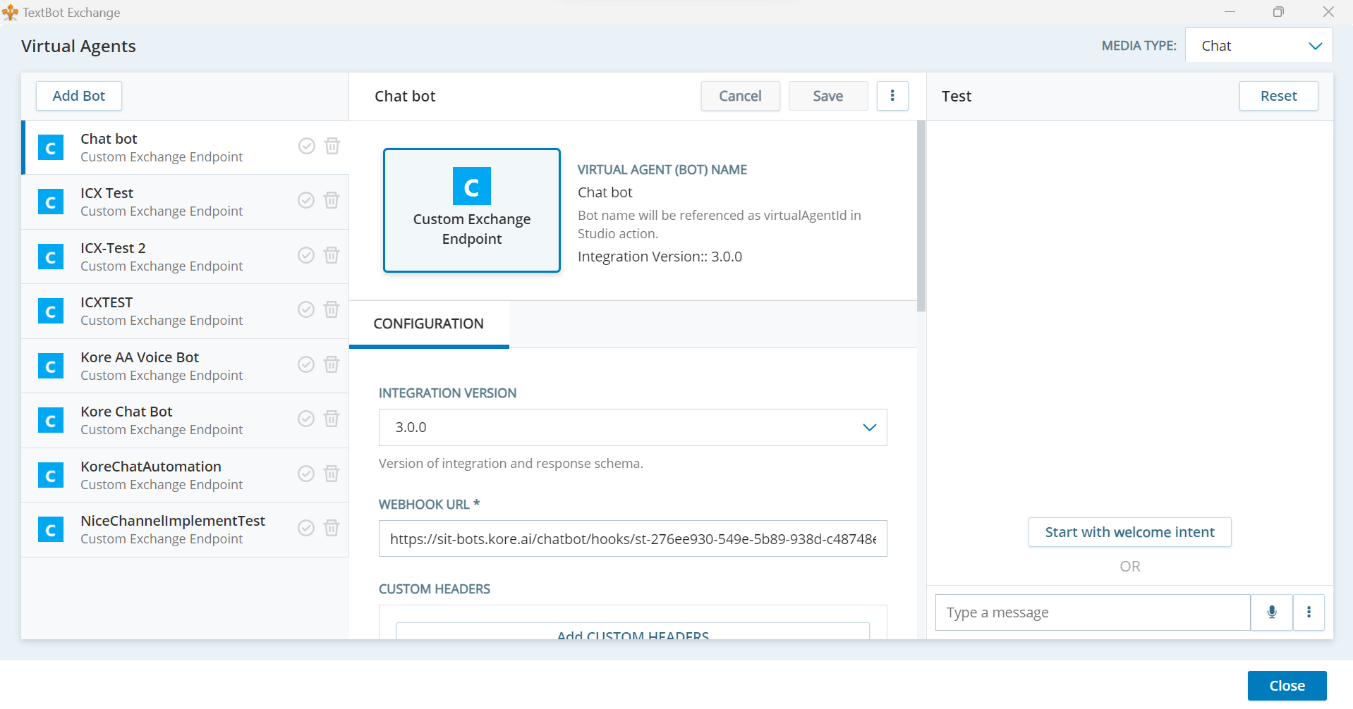The Platform supports Nice inContact as a channel for integrating an AI Agent with the NiceCXone Chat Automation platform for creating a rich and synchronous messaging experience for the end users.