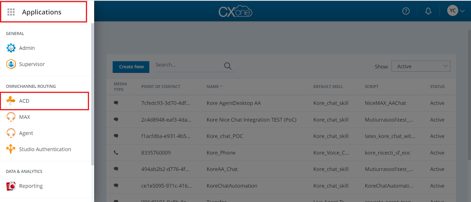 Log into the Nice CXone Portal. In the Applications menu in the top left corner, under Omnichannel Routing, click ACD (Automatic Call Distribution).