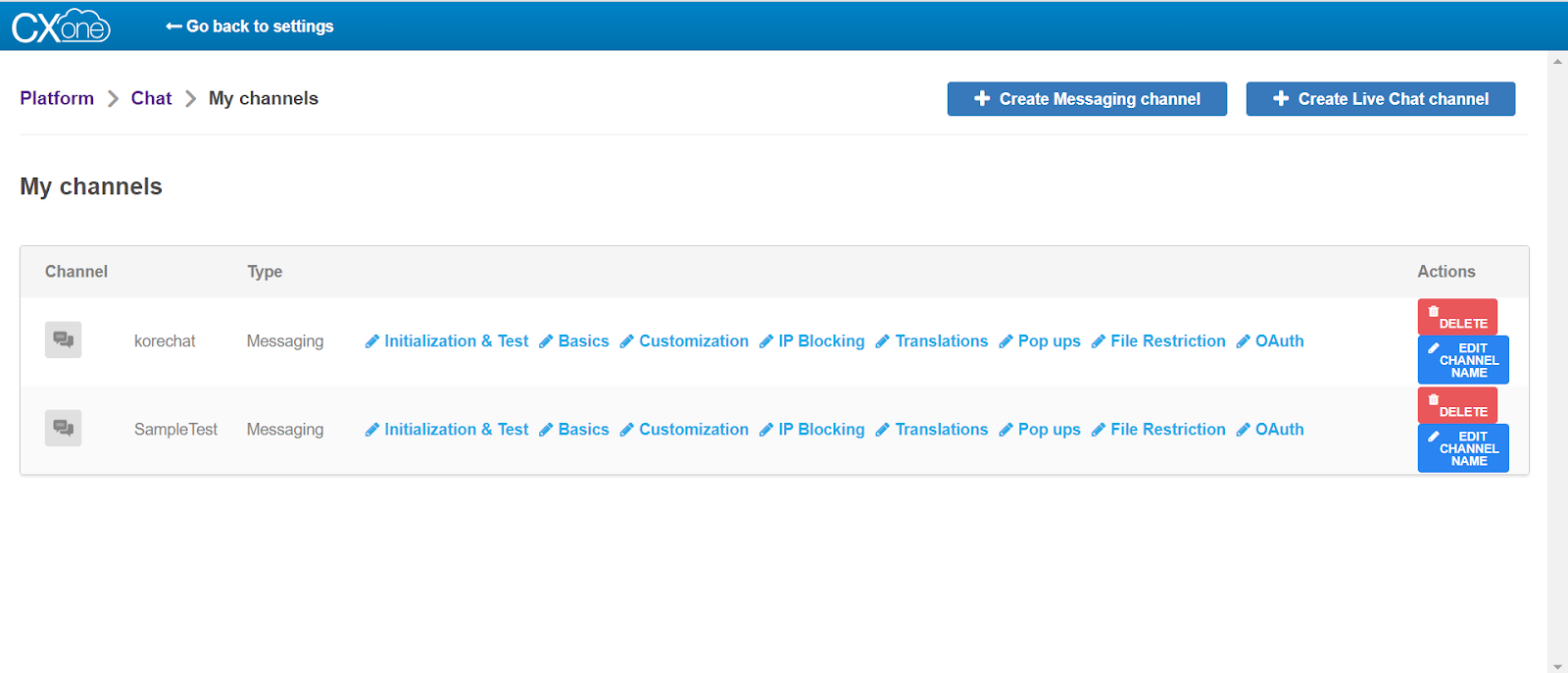 Click Create Messaging Channel, type in the channel name, and click Create.