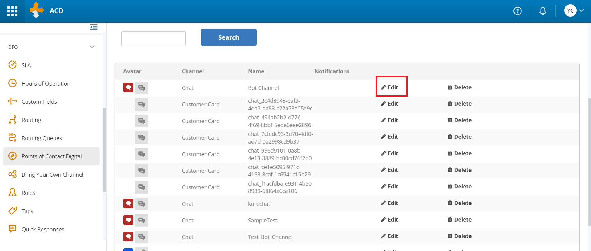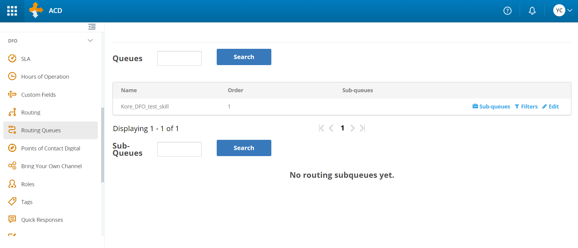 In the left-side vertical menu, under DFO, click Routing Queues. All the available queues are displayed.