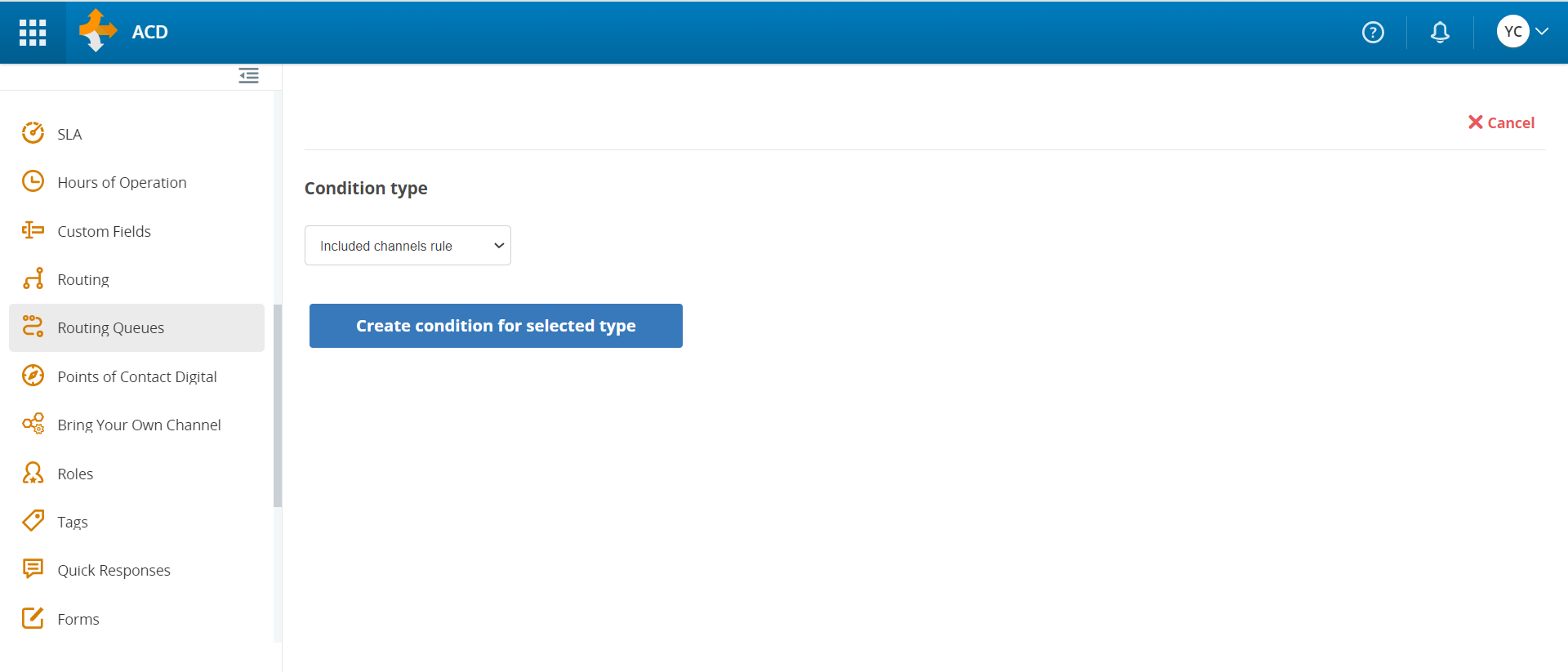 Click the Applications icon in the top left corner. Under Omnichannel Routing, click ACD.