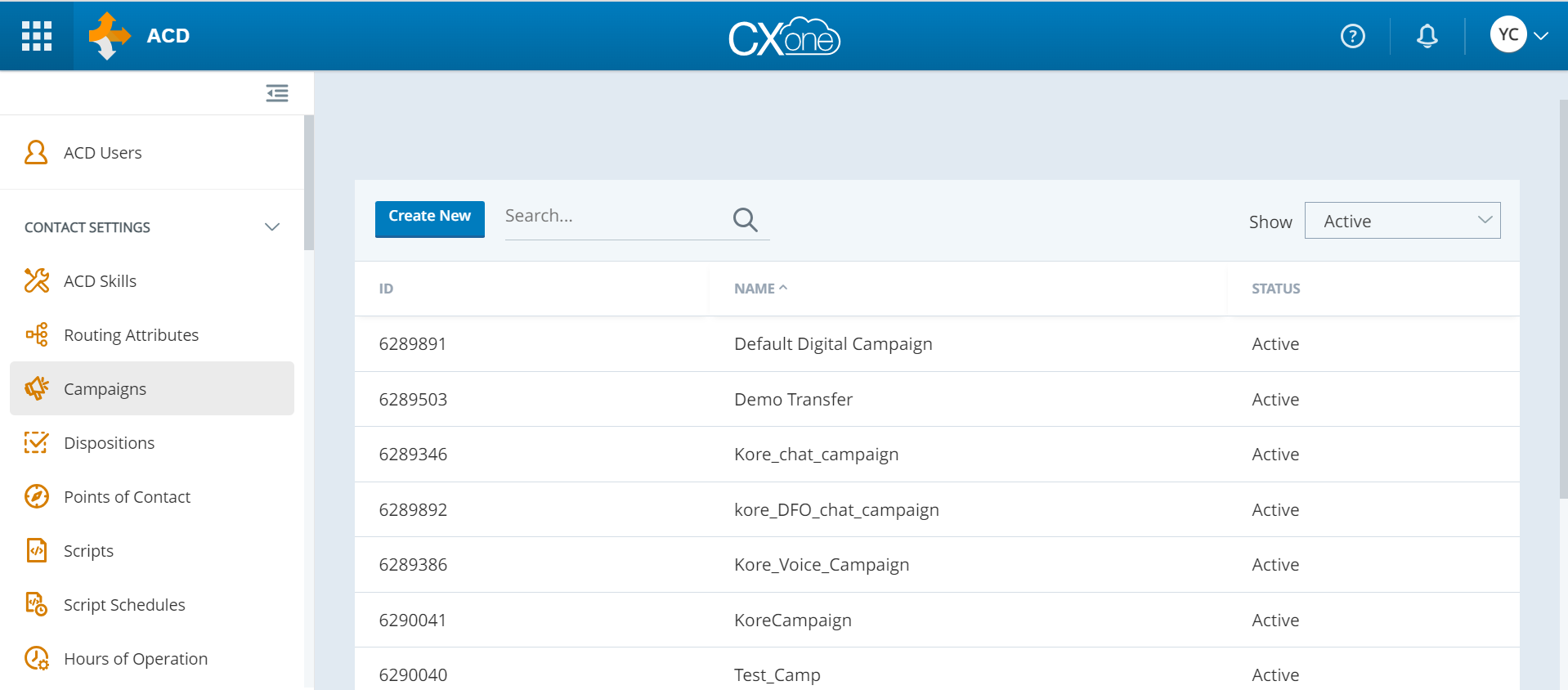 In the left-side vertical menu, click Contact Settings and then click Campaigns. The Campaigns page is displayed.
