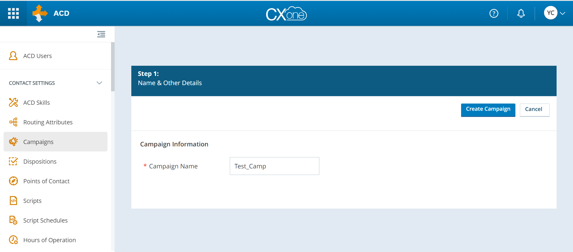 Type in the Skill Name, and select the created campaign from the Campaign dropdown.