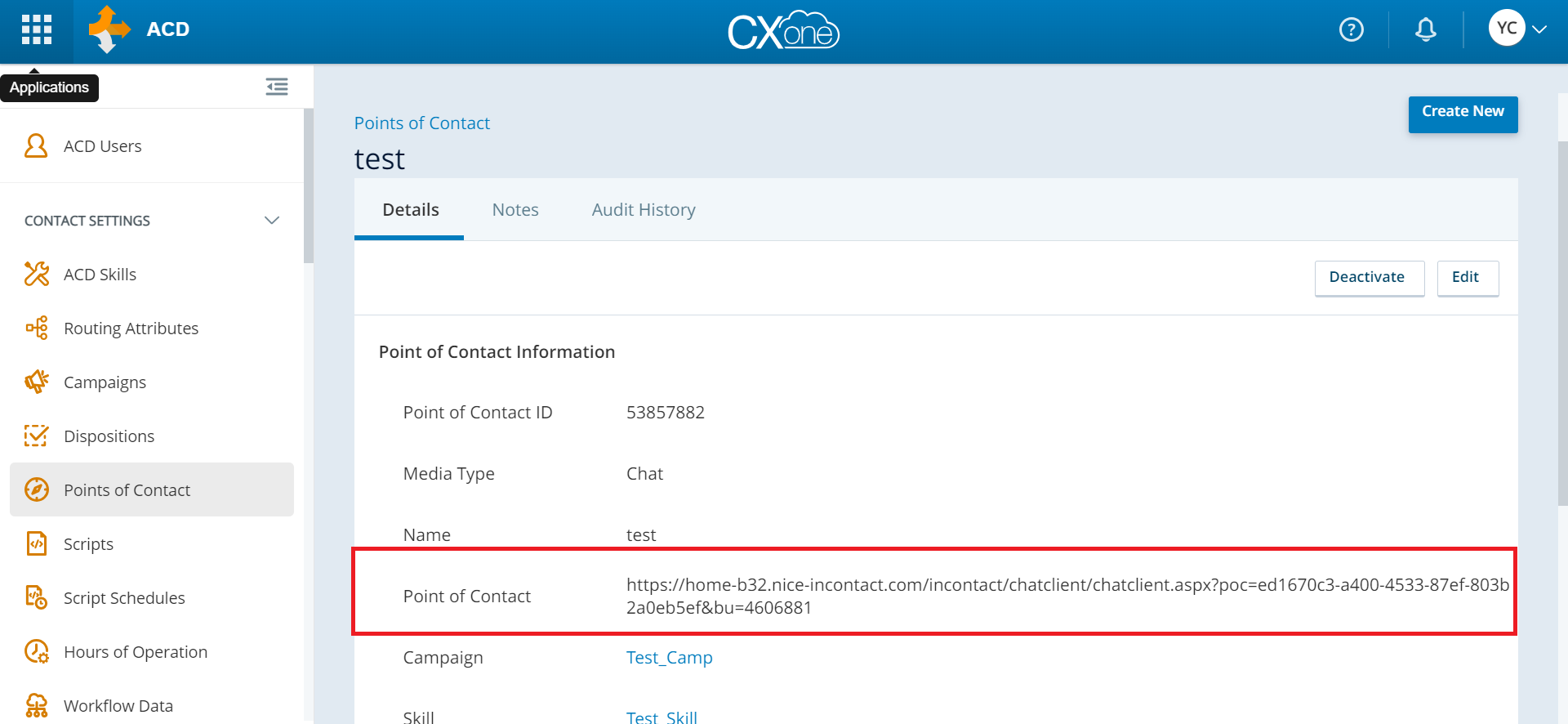 Step 3 (for Legacy Chat): Create the Chat Point of Contact¶