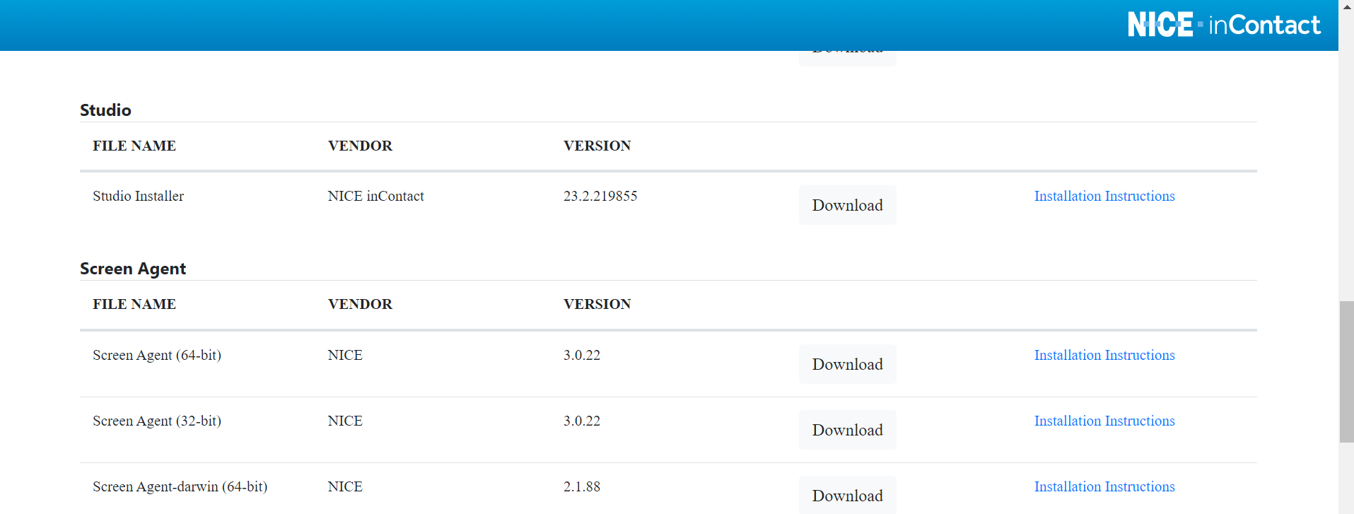 In the Studio section, download Studio Installer to download the Nice inContact StudioSetup.exe file.