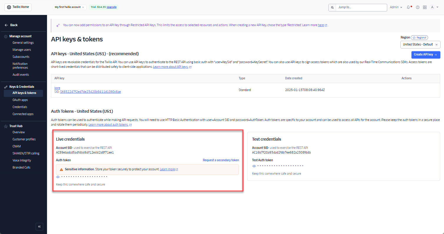 This procedure requires an active Twilio account access. For more information, refer to Create a Twilio Account. To add the Twilio Channel, pursue the following steps:
