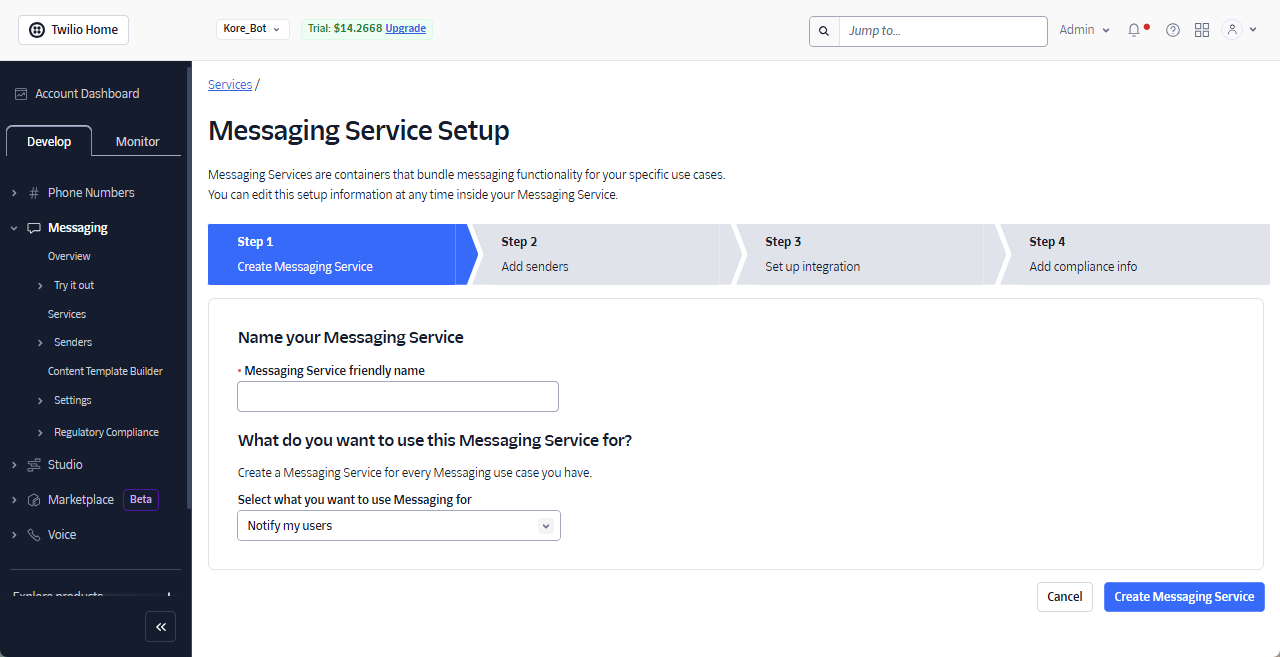 Create a Twilio Messaging Service¶